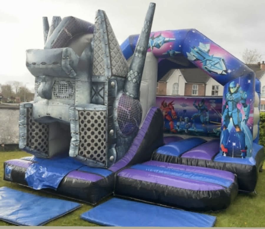 Whether you’re organising a birthday party in a garden, a hall-based celebration, or a small community event, the 3D Robot Bouncy Castle with Slide offers colourful fun in a compact, practical format.