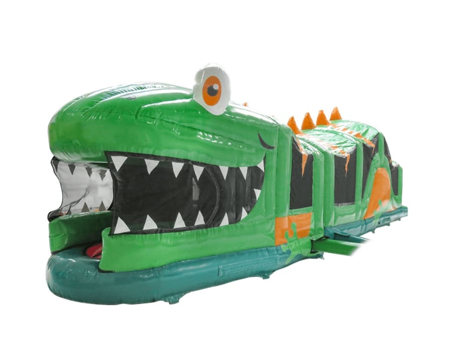 This isn’t your ordinary inflatable—this giant, brightly coloured creature looks like it’s come straight from the jungle and landed in your back garden! Kids and big kids alike are drawn to the massive 3D lizard head at the entrance, offering a truly unique twist to traditional assault course hire.