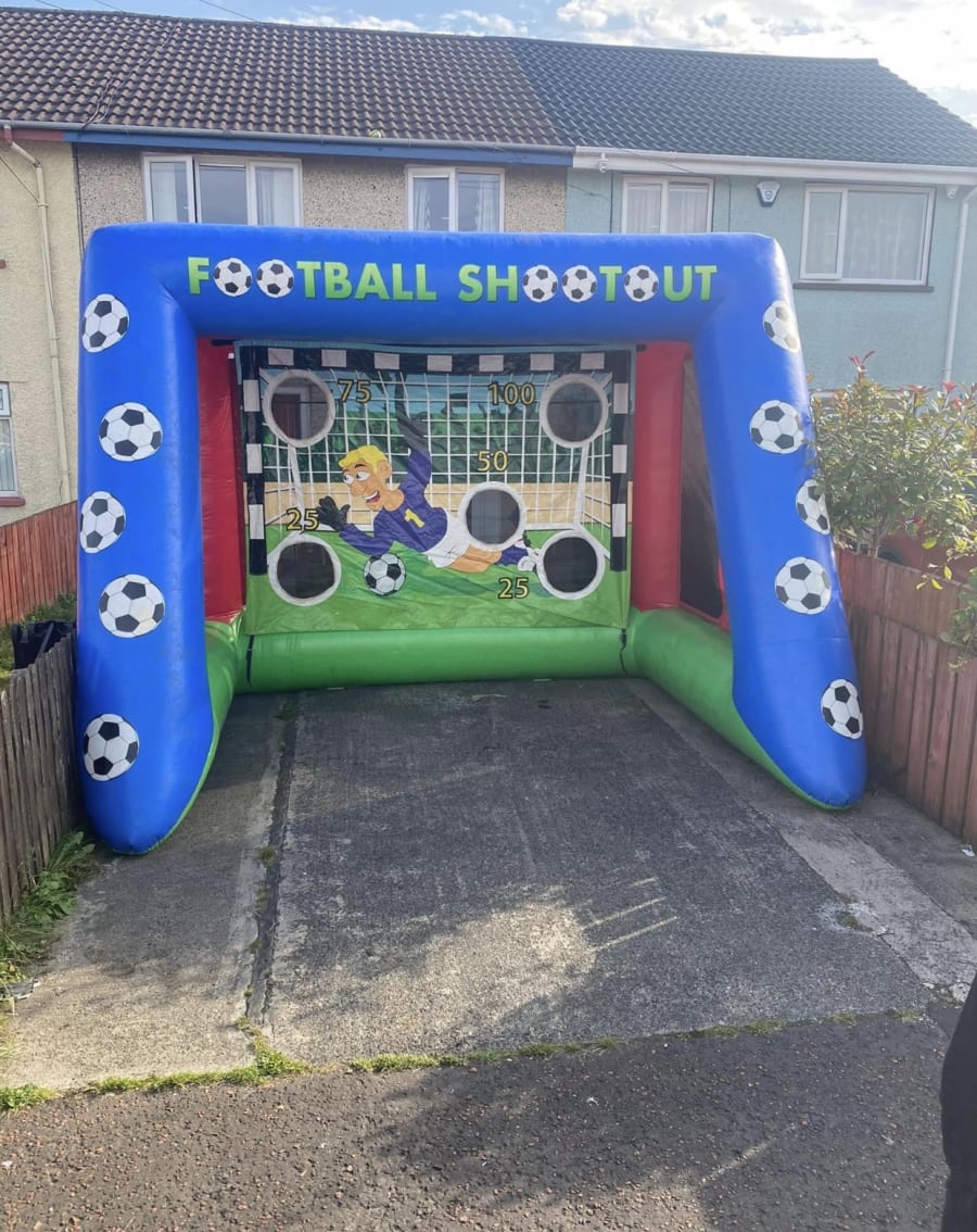 Test your football skills with our Penalty Shootout! This inflatable game comes with three footballs and is a fantastic party add-on or standalone attraction for family gatherings, school fetes, community events, and fundraisers. Available for hire across Coleraine, Portrush, Portstewart, Ballymoney, Limavady, and throughout Northern Ireland, it’s the perfect way to bring fun and competition to any occasion.