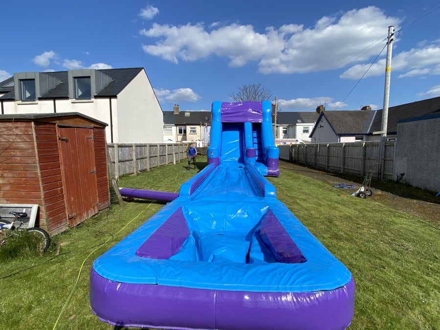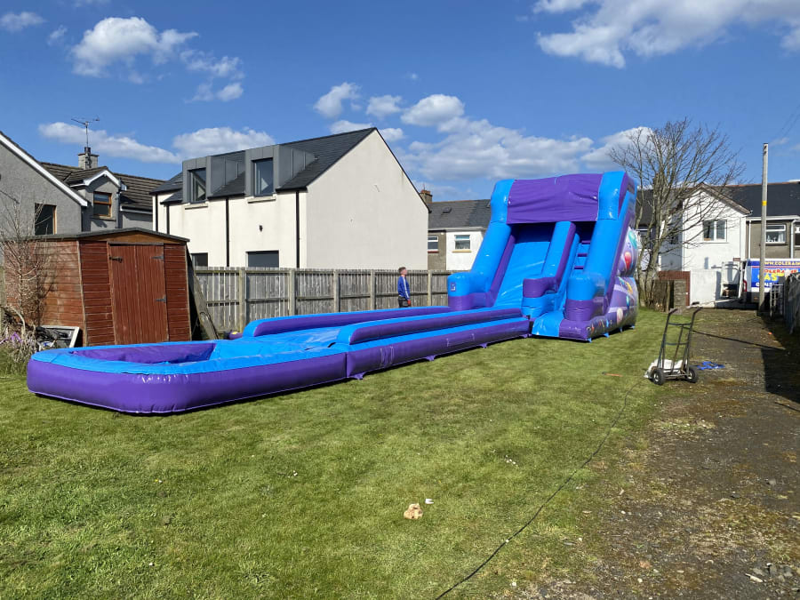 Make a splash at your next event with our 60ft Waterslide with Pool! This incredible inflatable features a thrilling slide, a smooth run-off, and a pool at the end for the ultimate water-filled fun. Perfect for birthdays, school fun days, community events, or any summer celebration, this waterslide is guaranteed to be a hit. Available for hire across Coleraine, Portrush, Portstewart, Ballymoney, Limavady, and throughout Northern Ireland, it’s a must-have for any occasion.
